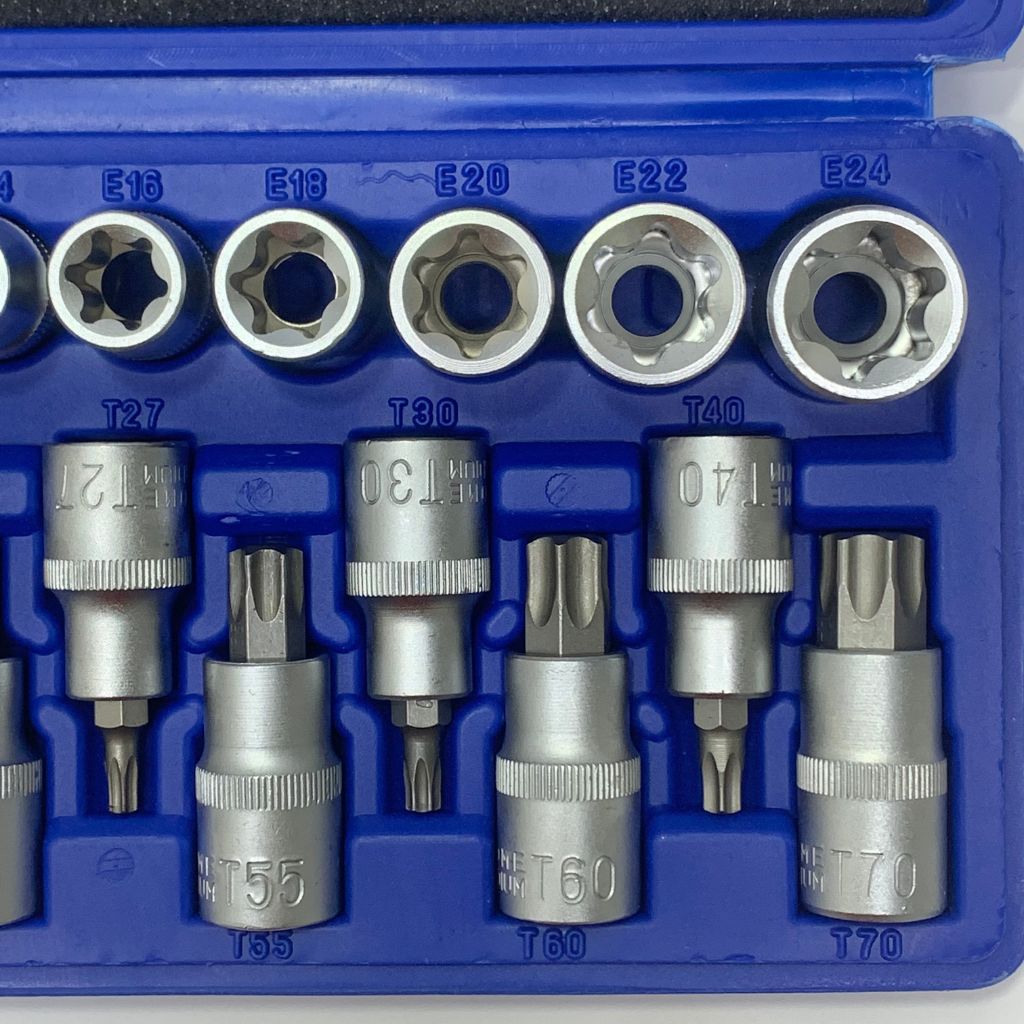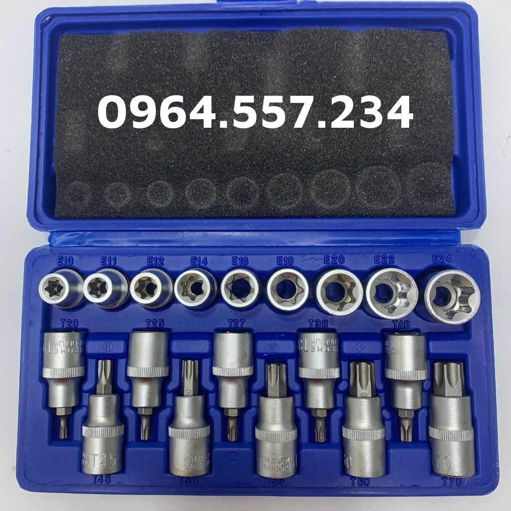 Sản phẩm được làm từ thép hợp kim CR-V cao cấp, chịu lực xoắn lớn và chống gỉ tốt. Bộ gồm 19 kích thước khẩu E thông dụng, phù hợp cho nhiều ứng dụng tháo lắp, bảo trì máy móc, thiết bị, ô tô, xe tải.