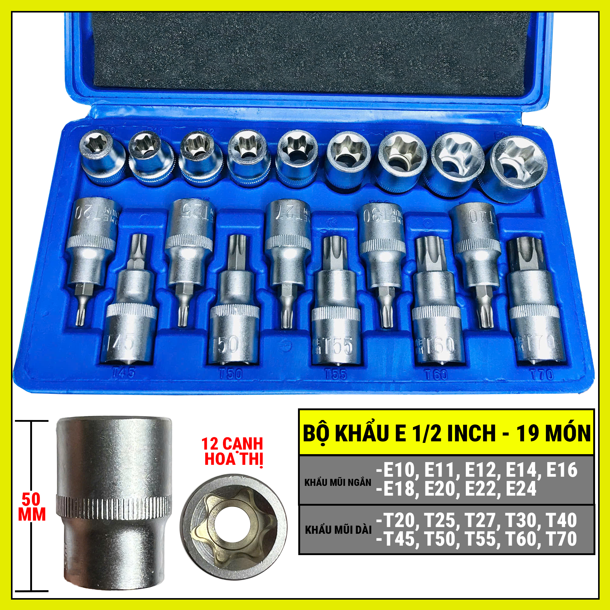 Bộ Tuýp E 1/2 inch 34 món ( hoa thị )