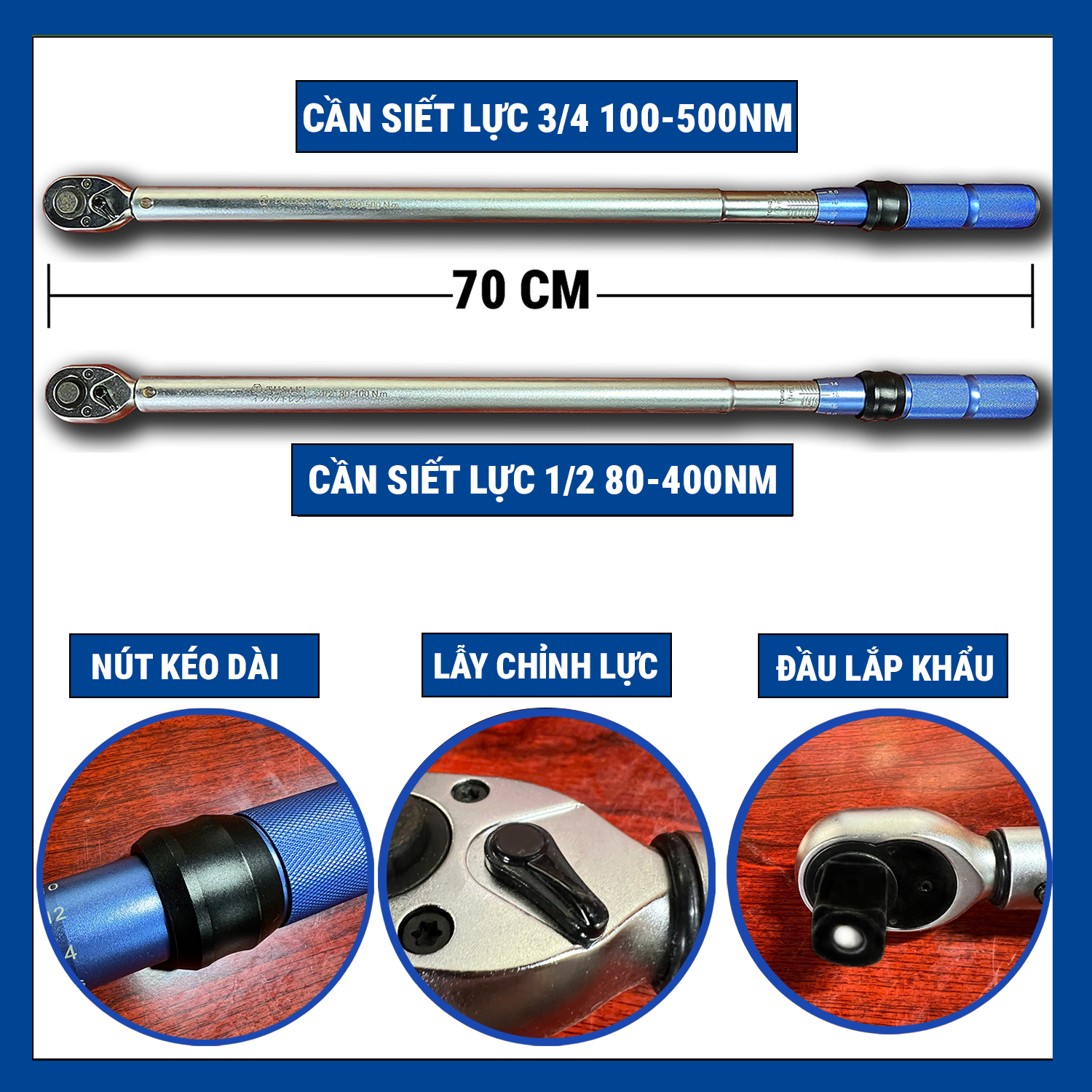 Cần siết lực 3/4 500Nm & 1/2 400Nm