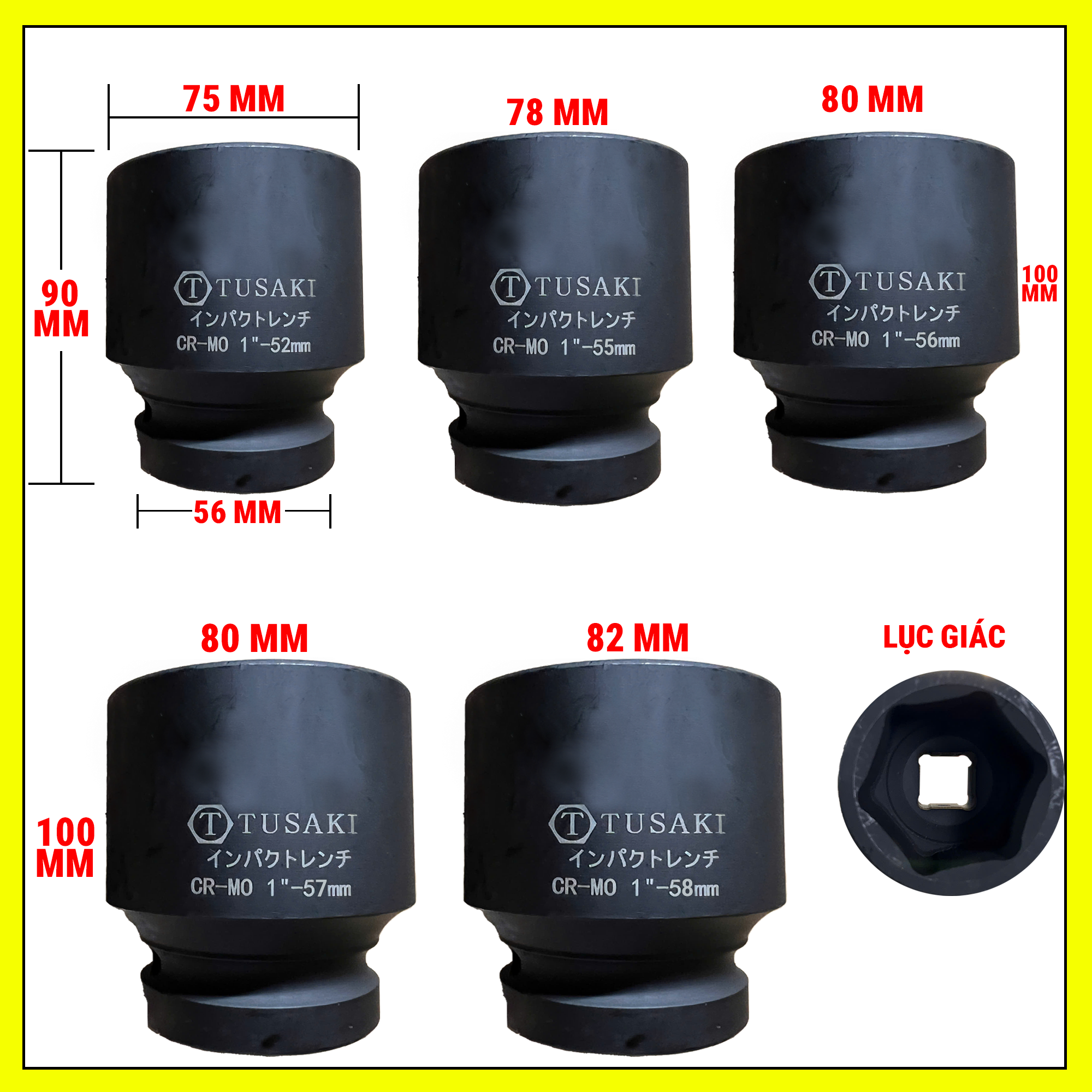 Dòng đầu khẩu 1 inch Tusaki (52–58mm) mang đến sự chắc chắn, dễ sử dụng và độ bền cao cho mọi thợ kỹ thuật. Thiết kế vừa khít giúp thao tác siết mở ốc nhanh chóng, giảm trượt và mài mòn. Sản phẩm phù hợp cho xưởng sửa chữa, gara ô tô, nhà máy, hoặc sử dụng cá nhân khi cần làm việc với ốc cỡ lớn