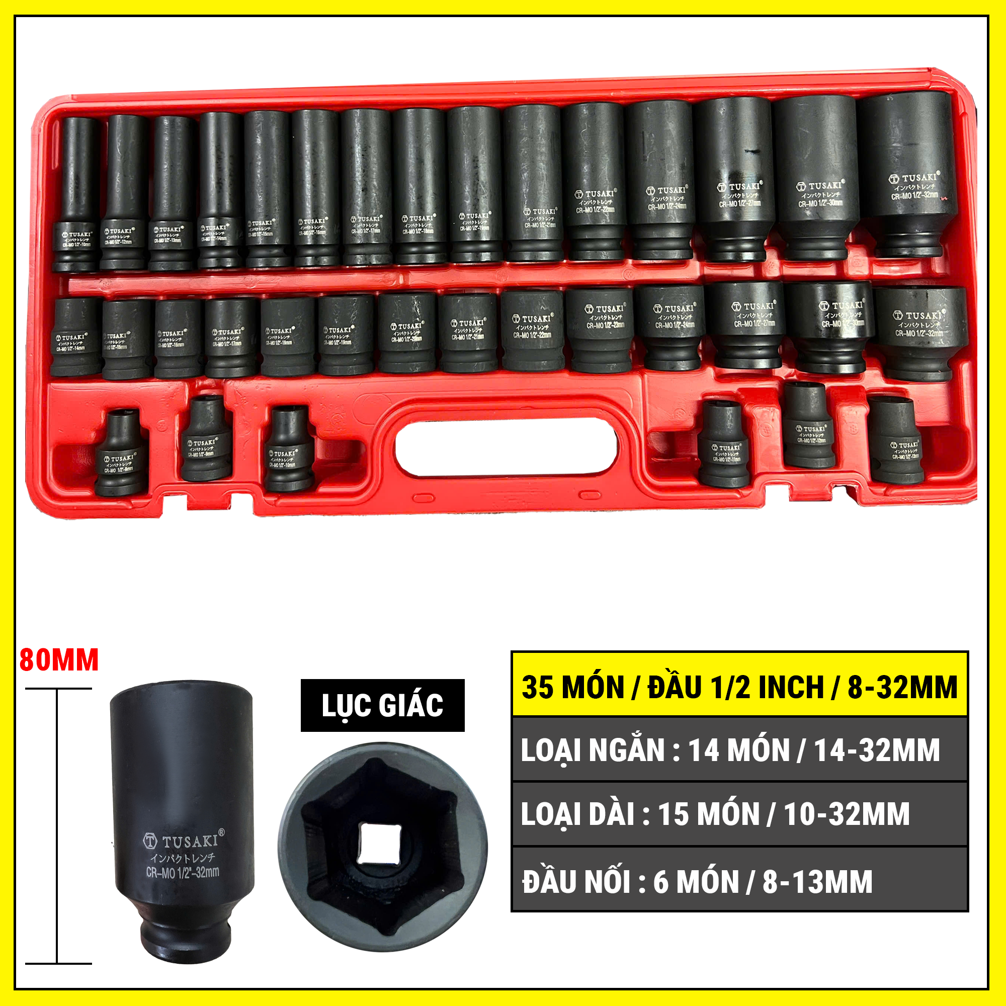 Tusaki mang đến bộ típ khẩu 35 chi tiết 1/2 inch, được thiết kế dành cho người thợ chuyên nghiệp và người dùng kỹ thuật. Toàn bộ chi tiết được chế tạo từ thép CR-V chịu lực, bề mặt mạ chrome chống gỉ sét, đảm bảo tuổi thọ lâu dài. Bộ dụng cụ đa năng này giúp bạn xử lý nhanh các công việc tháo lắp bu-lông, đai ốc trong môi trường xưởng, gara, hoặc công trình cơ khí. Với thiết kế thông minh, bộ típ Tusaki là giải pháp tối ưu cho công việc chính xác và hiệu quả.