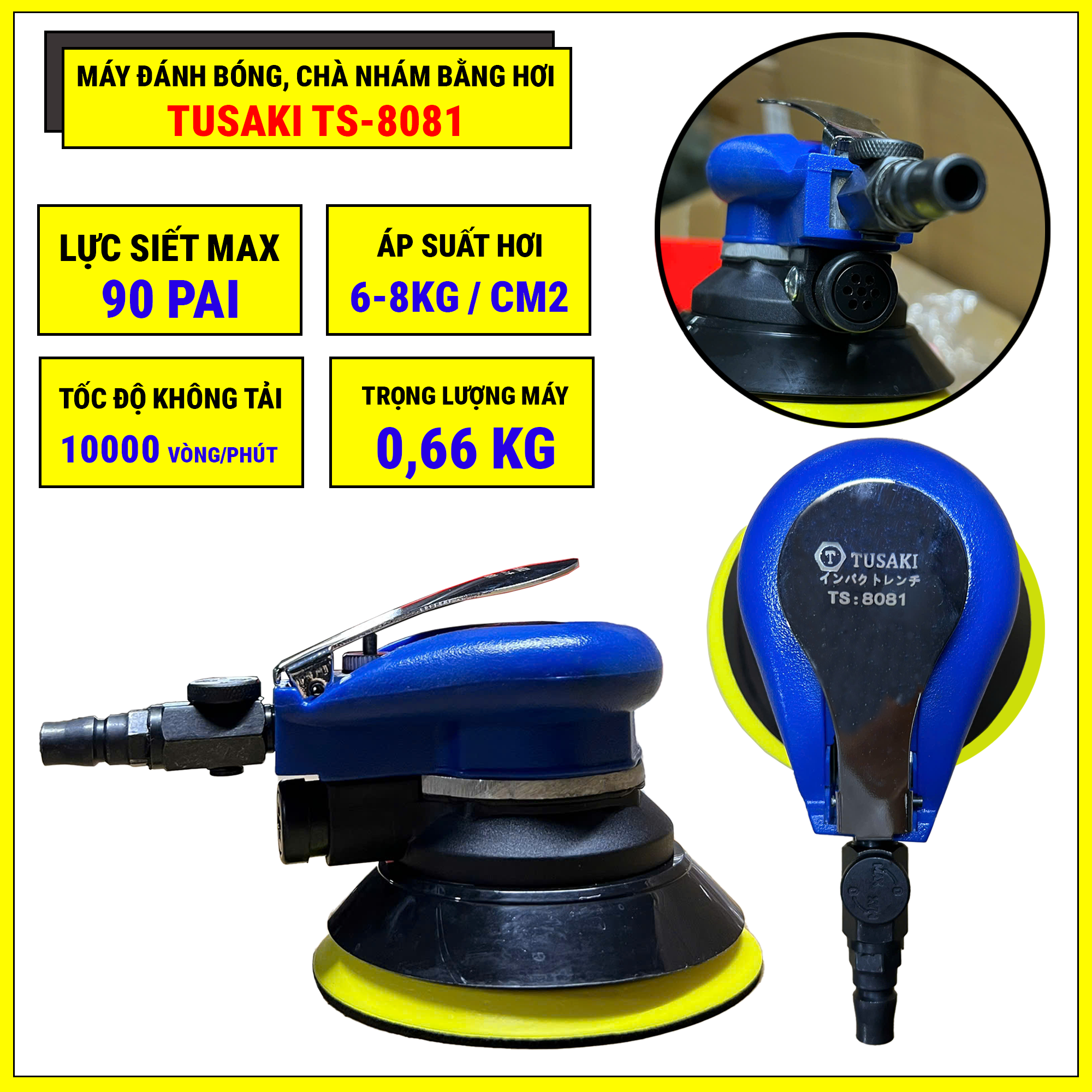 TUSAKI TS-8081 là máy đánh bóng và chà nhám bằng hơi khí nén chuyên nghiệp, được thiết kế cho các công việc xử lý bề mặt, hoàn thiện sản phẩm và đánh bóng kim loại, gỗ, sơn xe.